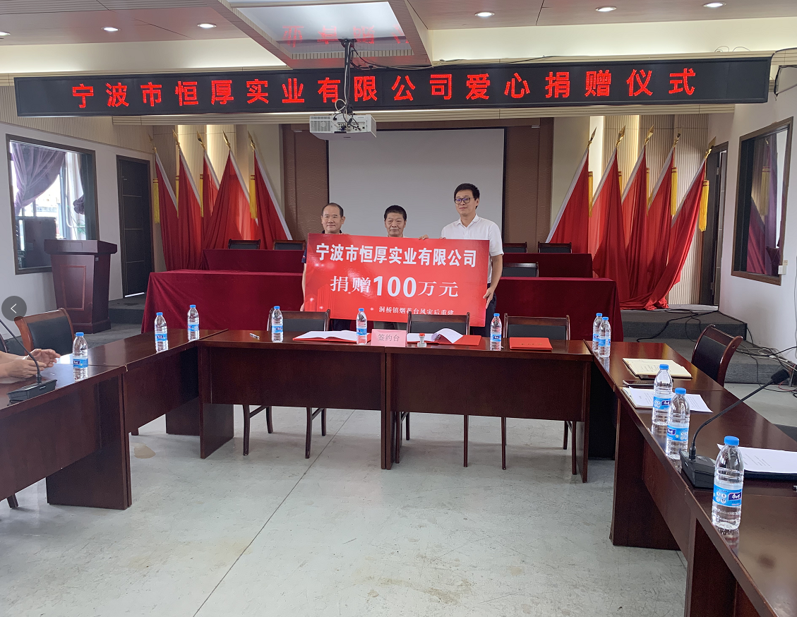 8月3日,恒厚集團愛心捐贈儀式在洞橋鎮(zhèn)人民政府舉行,恒厚集團向海曙區(qū)慈善總會捐款100萬元,定向用于洞橋鎮(zhèn)“煙花”臺風災后重建。