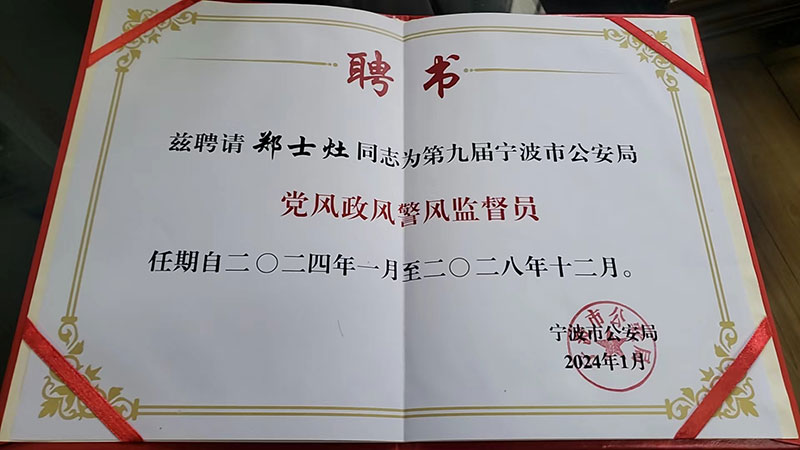 恒厚集團(tuán)董事長(zhǎng)鄭士灶被聘為第九屆市公安局黨風(fēng)政風(fēng)警風(fēng)監(jiān)督員